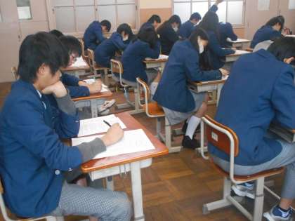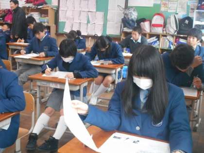 2時間目は社会です。地理や歴史の復習問題もあるので,生徒たちも苦労している様子です。