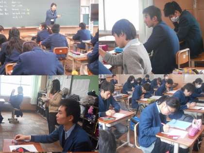 先生の英語を聞いて,適当なものを答えるという,リスニング形式で授業が行われています。