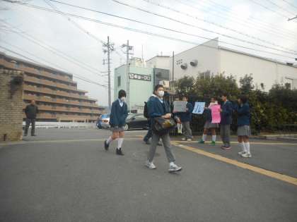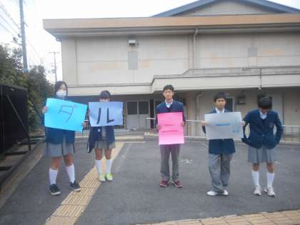 生徒会本部、代表委員の人が今朝も頑張っています。