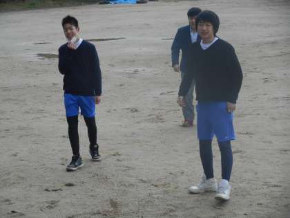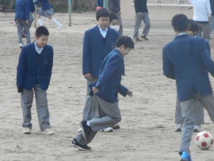 雨の後でグラウンド状態はよくないですが,元気にサッカーなどに熱中しています。中にはどろんこになりながら遊んでいる人もいました。