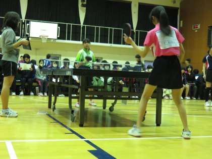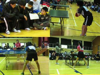 卓球の男女個人の市内大会が本校体育館で行われました。山科中も男女合わせて7人が予選ブロックを勝ち抜き出場しました。さすがに各ブロックを勝ち抜いた選手ばかりで,なかなか勝ち進むことは出来ませんでしたが,この経験を春の大会につなげて欲しいと思います。