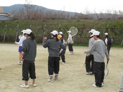 昨日よりましとはいえ,身を切るような寒さの中、テニスコートでは女子テニス部が元気にラケットを振っています。スウェットやハーフパンツの部員もいて,身体を動かしていないと、すぐに冷えてしまいそうです。