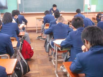 私立の入試の翌日の朝,教室では生徒たちがいろいろと話したいことがたくさんありそうな雰囲気でしたが,先生の「わかるけど今は本を読もう」という一声で静かに読書が始まりました。