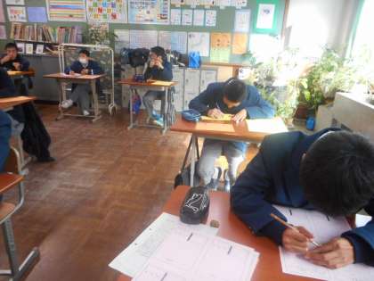 Aクラスでは,総合の時間に卒業に向けてのメッセージづくりをしています。Bクラスは国語の時間の様子です。
