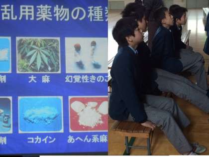 1・2年生は学年末テスト尾受けています。卒業する3年生は,体育館で薬物乱用防止教室を行い,特に子どもたちの身近に迫る合成麻薬などについて学習しています。