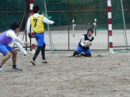 キーパーもナイスキャッチです。男女とも順位がかかってきて熱がこもります。