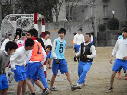 風が強く3月とは思えないぐらい寒い一日でしたが,午前中一杯みんなで球技大会を楽しみました。