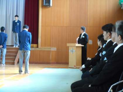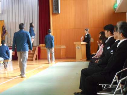1組の担任山内先生に続いて,2組佐藤先生、3組中玉利先生、4組笠嶋先生と名前を読み上げてくれています。