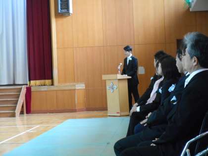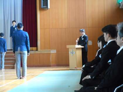 7組宇津木先生、8組は矢野先生です。参列している在校生もしっかりした態度です。