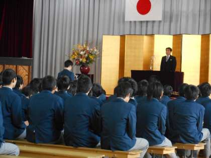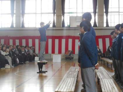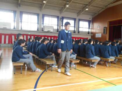 答辞は生徒会長の山路くんです。感謝の気持ちを込めてしっかり読み上げてくれました。答辞の後は,大地讃頌の合唱です。体育館に歌声を響き渡らせてくれ,感動の合唱でした。