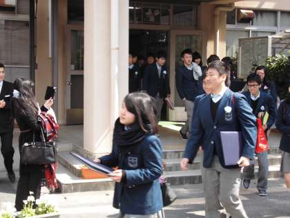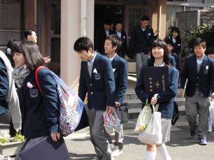 卒業生たちは,先生方や保護者の方に見送られて学校を後にします。
