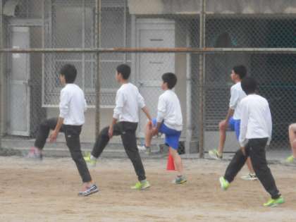 今日はグラウンドでのトレーニングです。駅伝部のトレーニングはいつもよくそろって動いています。