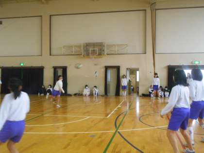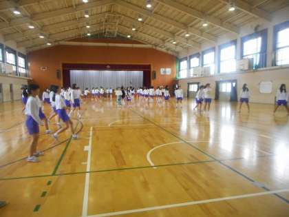 女子は体育館でドッヂボールを行います。