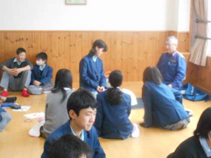 山科消防署の方に来ていただき,2年生で救急救命処置の研修を行いました。