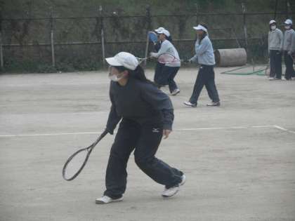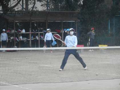 テニスには少し寒い気温ですが,2年生を中進に元気に声を出して頑張っています。
