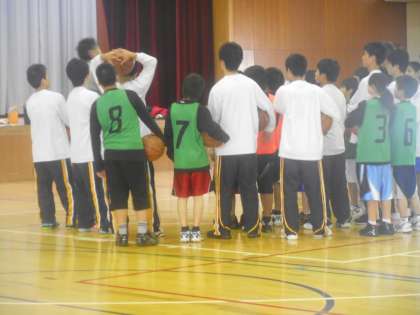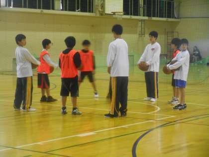 今日は小学生のチームと合同の練習です。5年生,6年生も元気一杯にコートを走っています。