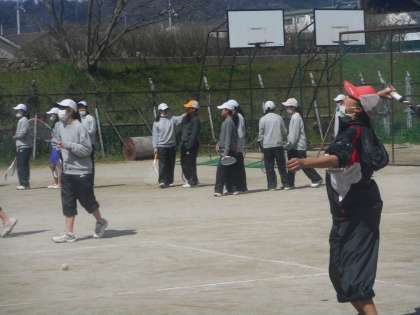 昨日今日と気温が低いので,ラケットを握る手も冷たそうですが,声を出し合って頑張っています。