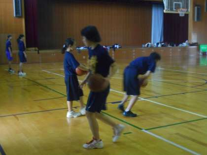 女子バスケット部は,顧問の先生が異動になりましたが,2年生を中心に練習に励んでいます。