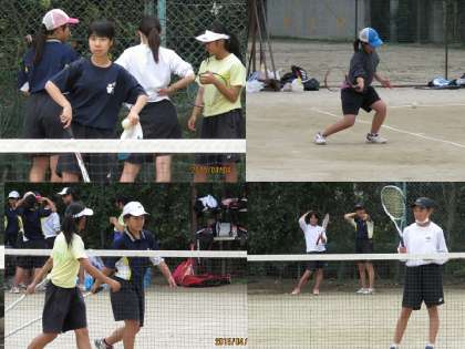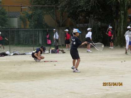テニス部は朝から練習です。午後からは春季大会のメンバーを決める,部内の試合が行われます。50人以上の部員ですから競争は激しいですね。