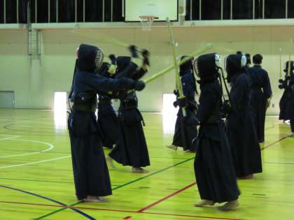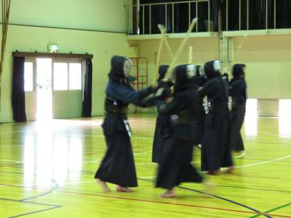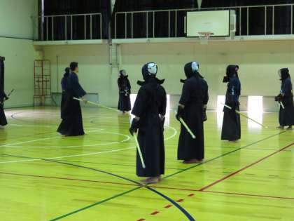 体育館西側では剣道部が練習です。しっかり声を出して頑張っています。