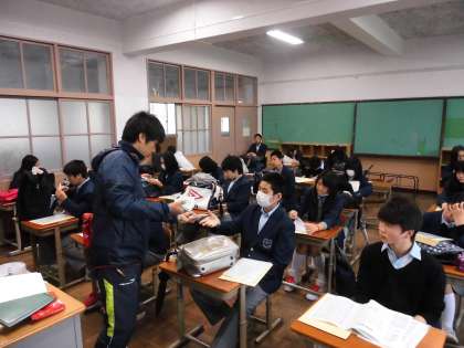 始業式の後、各クラスで初めての顔合わせ。担任の先生から,「一年間こんなクラスにしよう!」と所信表明です。