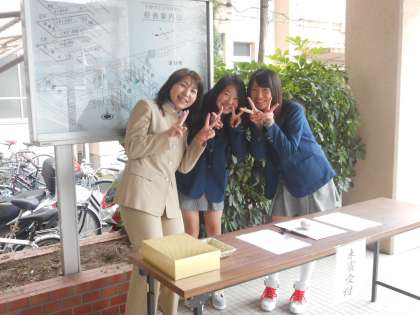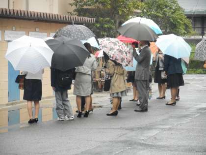 いよいよ入学式の朝です。校門の旗の掲揚も整い,受付などかく持ち場で準備中です。生憎の雨になって、クラス発表も傘を差して見て頂いています。学級写真が撮れるかどうか心配な天気です。