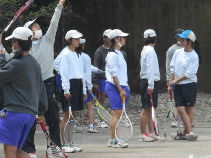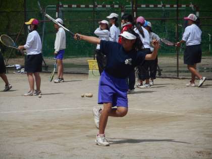 新しく来られた福島先生が,初めて休日の練習を指導されています。3年生は西條先生がしっかり打ち込ませています。