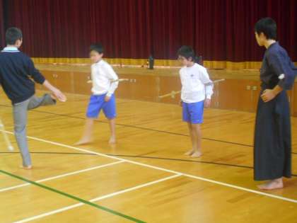 剣道部の今日の体験は2人でした。キャプテンの森君と加納君が教えてくれています。