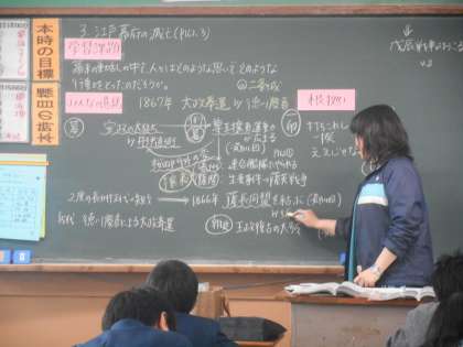 3年生の社会科は永田先生のクラスです。幕末の大政奉還のところを学習していました。