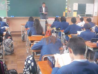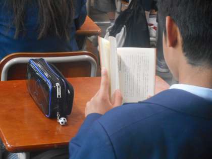 今朝は2年3組です。朝読書の前に先生から生活面に関して少し話がありましたが,後半は本に向き合っています。