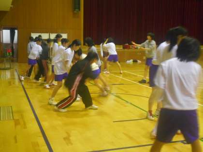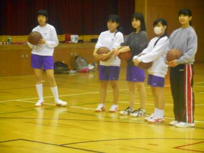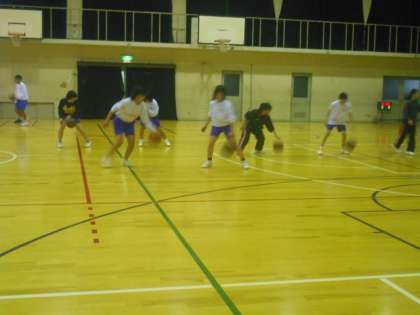 体育館では女子バスケットボール部が活動しています。1年生が多く体験に来てくれて,一気に活気が出た気がします。