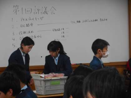 評議委員会には文字通りクラスの代表が集まり,生徒会も会長副会長が出席します。先生も本部担当の先生が参加します。