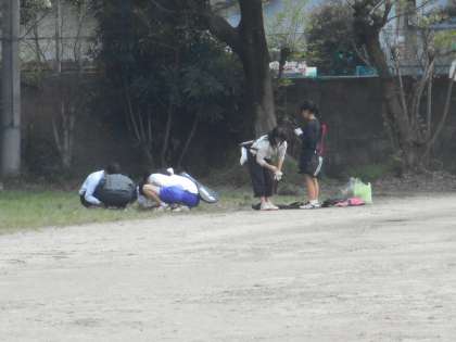 委員会が終わるまでは,部活動の生徒は決められた分担に従って清掃活動です。廊下や階段をきれいに掃いてくれるクラブやグラウンドの草むしり、クラブボックスの掃除などこちらも結構たいへんですが,みんな一生懸命やっていました。こうやってみんなで協力できるところも,山中の良いところの一つだと思います。