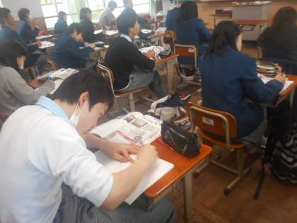1組は社会の時間。明治の文明開化のところあたりを学んでいます。
