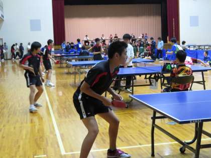 卓球の団体戦は,洛星中学を会場に行われました。山科中はシードで,2回戦で下京中学と対戦です。