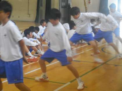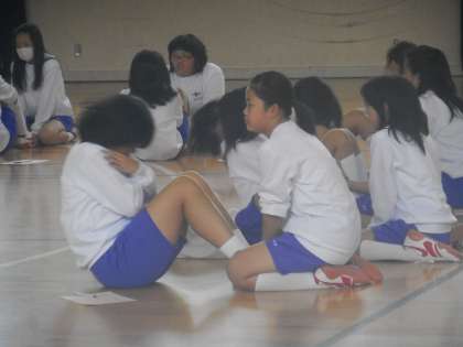 1年生の4組・5組は体育の授業で,今はスポーツテストの時期です。男子は「反復横跳び」、女子は「上体起こし」を測っています。