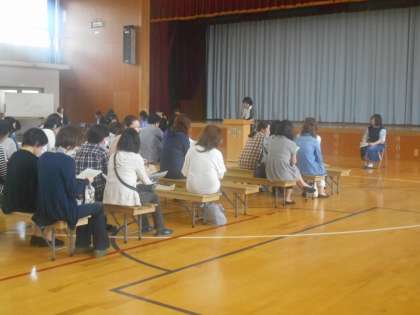 議事進行の議長は,1年生保護者の上田さんにつとめて頂き,事業案は庶務の井上さん,予算案は会計の安岐さんが提案され,承認されました。総会の最後は副会長の藤井さんのあいさつで締めくくられました。