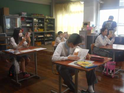 朝は読みたい本を選んで,それぞれの教室で静かに読書にとりくんでいます。
