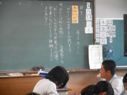 井上ひさしさんの「握手」という作品をもとに学習しています。主人公のルロイ神父(修道士)の現在と回想の部分という二重の時間軸の流れになっているので,3年生ぐらいにならないと,読み解くのが少し難しい作品かもしれません。