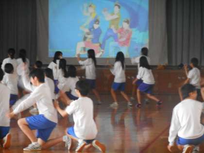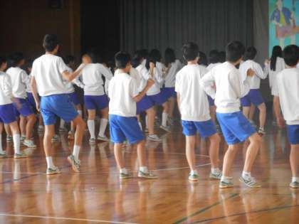 2年生体育の時間は体育大会に向けて,「全校ダンス」の練習です。