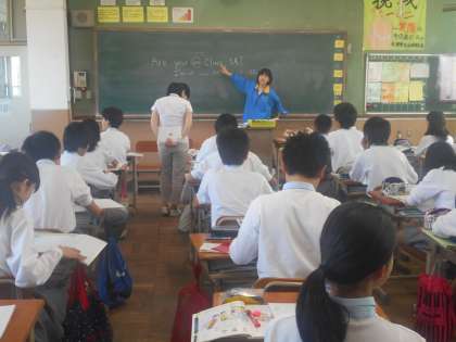 山下先生と一緒に,今日から幸脇先生が英語の授業に入ってくださっています。1年生の英語の授業を中心に手伝って頂きます。