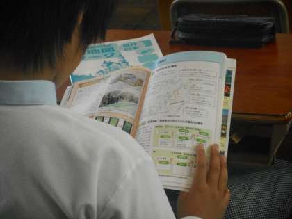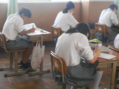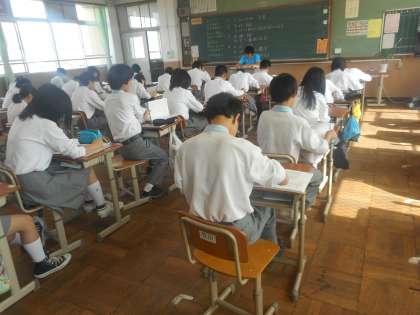 1年1組の学習のようすです。中学で初めてのということもあり,緊張して静かに学習をしています。