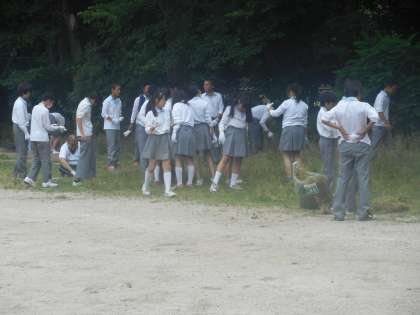 テストが終わった後、全校で「ゴミ0」(5月30日)の取り組みとしてクリーンキャンペーンを行いました。3年生は校外へ出て,公園や堤防などを。2年生はグラウンド北側,1年生は南側,8組は玄関ポーチ付近を担当しました。