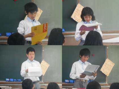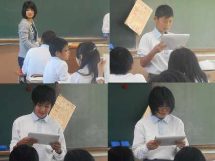 前の時間にやった「中学生になって・・・」と言うインタビューの結果を,それぞれが発表しています。