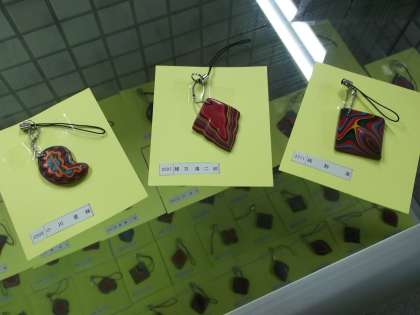 今回の作品は伝統的な漆工芸の一つで,色鮮やかな「ストラップ」を作りました。