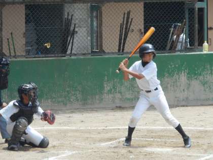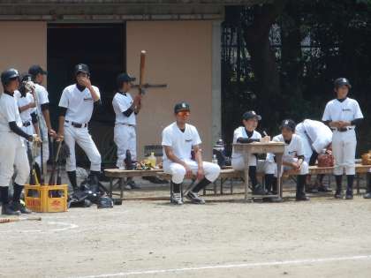 学校に戻ると野球部が練習試合をしていました。