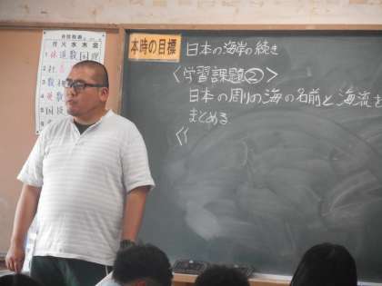 2年生の社会科は地理の学習です。日本近辺の地形について学習しています。