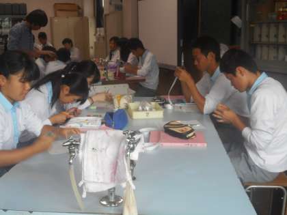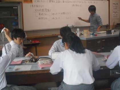 3−7組の理科の授業です。今日は記録タイマーを使って運動を記録する作業です。