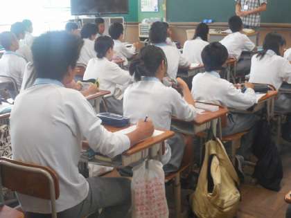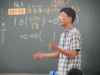 2年生の家庭科では「既製服」について説明しています。時代を反映してか,自分で服を選んで買うという生徒が半数以上でした。島田先生も「自分が子どもの頃はすべて親が買ってくれたものを着ていたけど」と感心しておられました。