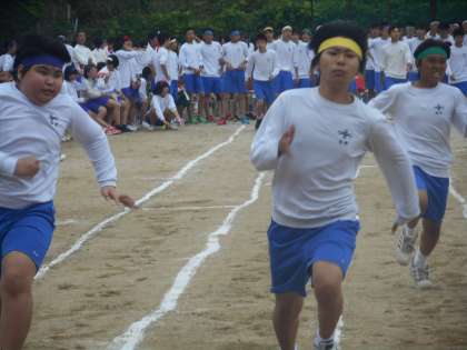 3年生男子の100メートル競走。迫力あります。